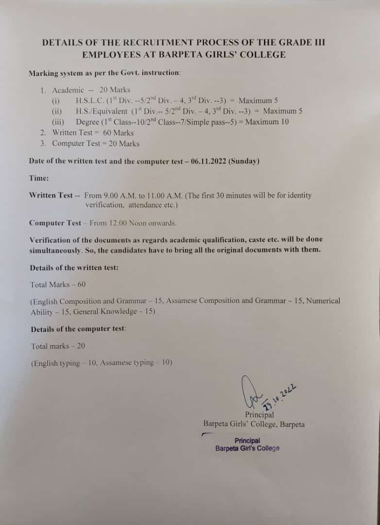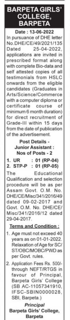 - All the applicants are hereby informed that the interview for the post of Assistant professor in Education at Barpeta Girls' College in scheduled to be held at the college premises on 8th june,2022 from 10 A.M.